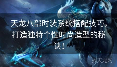 天龙八部时装系统搭配技巧,打造独特个性时尚造型的秘诀!